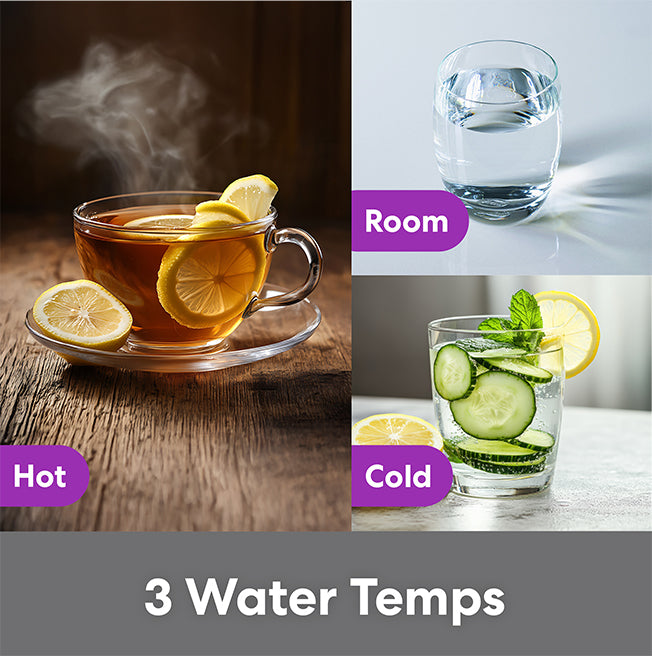 • Tri-temperature: dispenses hot, cold, or room temperature water on demand