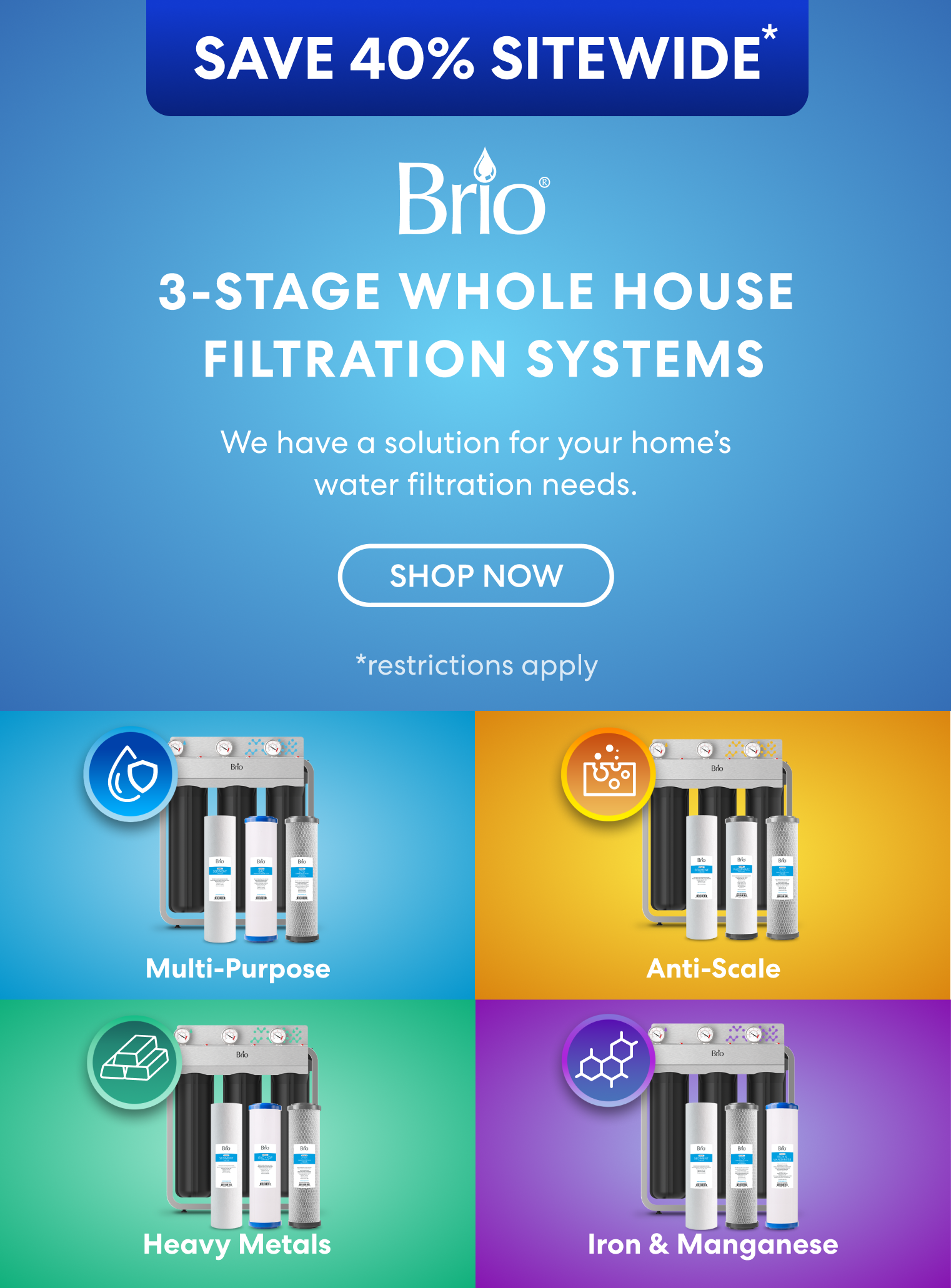 mineral buildup in your appliances—even your coffee maker. For ultra-purified water, pair a whole house system with the Brio Tankless RO Undersink Filtration System.