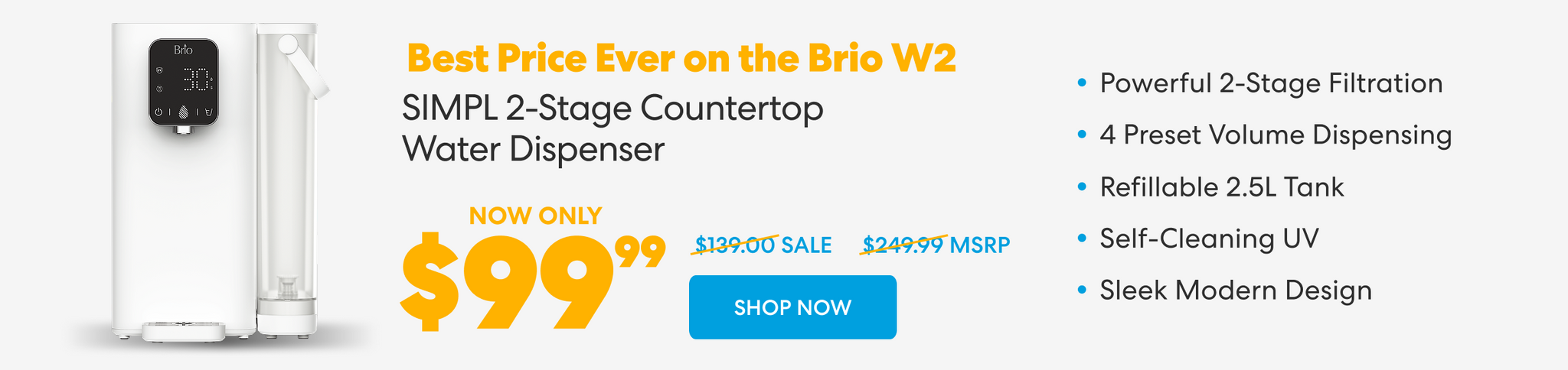 Brio SIMPL Tankless Reverse Osmosis (RO) Undersink Filtration System 800GPD