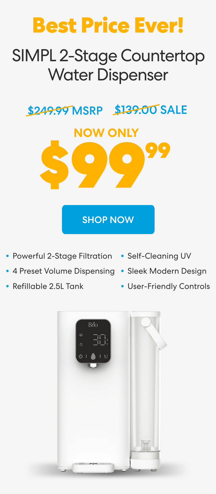 Brio 3-Stage Digital Instant Hot Water Undersink Dispenser System - Chrome Plated