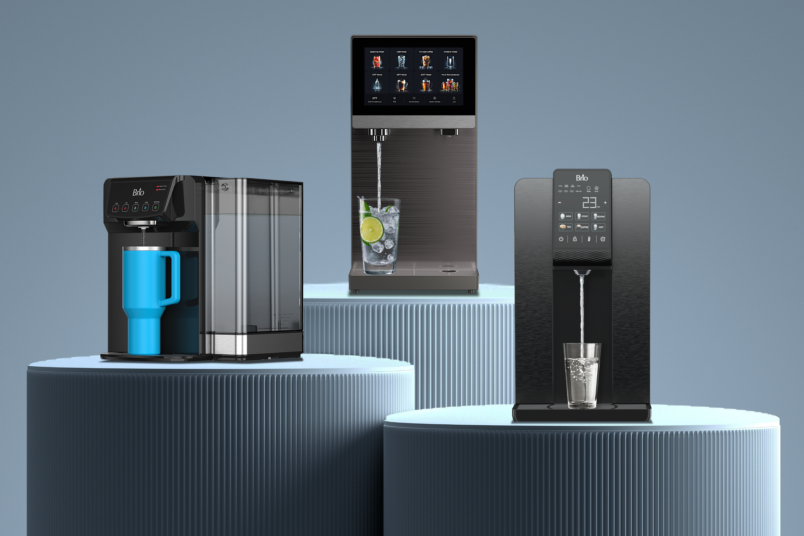 Experience the convenience of an installation-free countertop dispenser that provides RO-purified sparkling and still water.