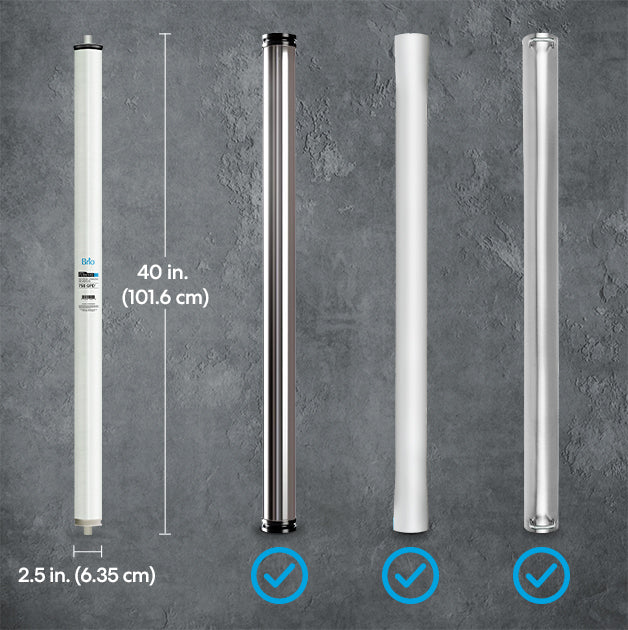 • Universal fit: industry standard fits 2.5" x 40" commercial RO membrane housings or pressure vessels