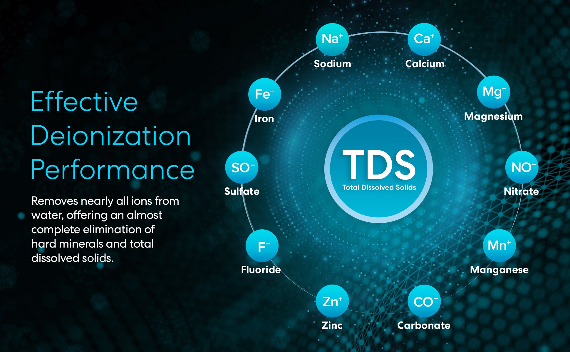 • Premium quality: 1:1.5 cation-to-anion volumetric ratio of a strong acid cation resin in the hydrogen form and a strong base type 1 anion resin in the hydroxide form
